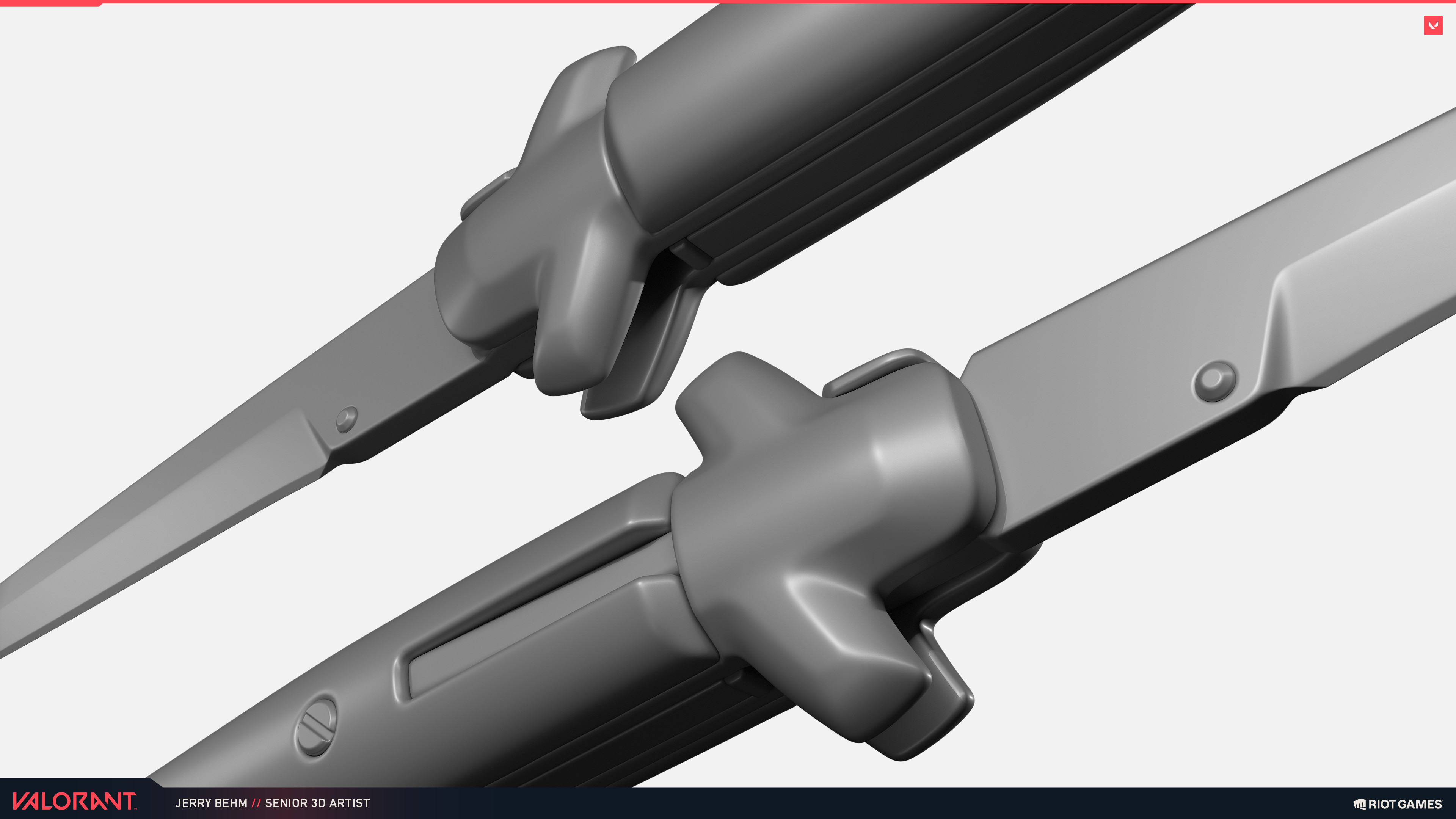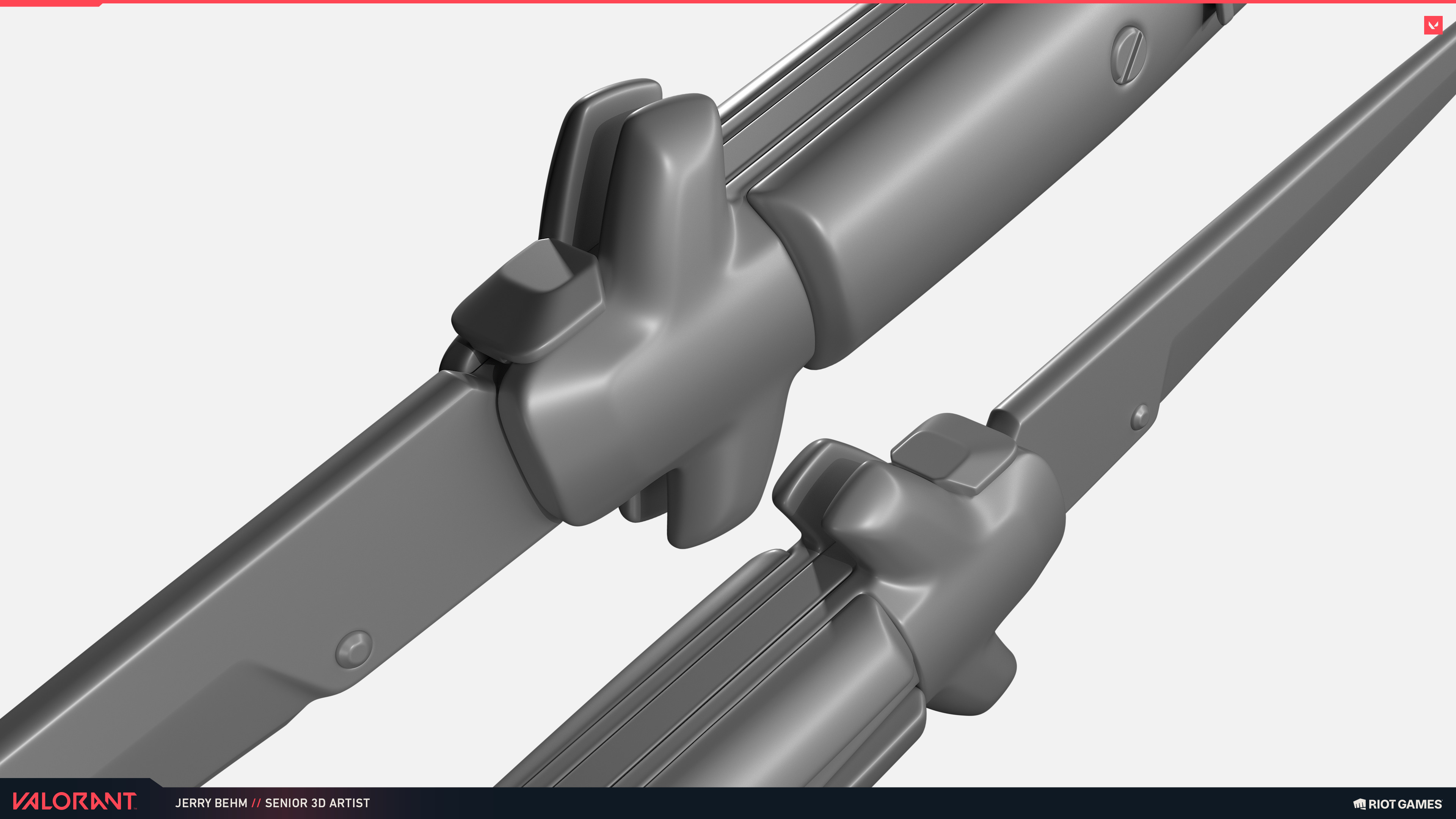 This was my introduction to the VALORANT art style after joining the team, and my first shipped weapon skin for VAL. It shipped in September 2024 as part of the Aperture skin bundle.